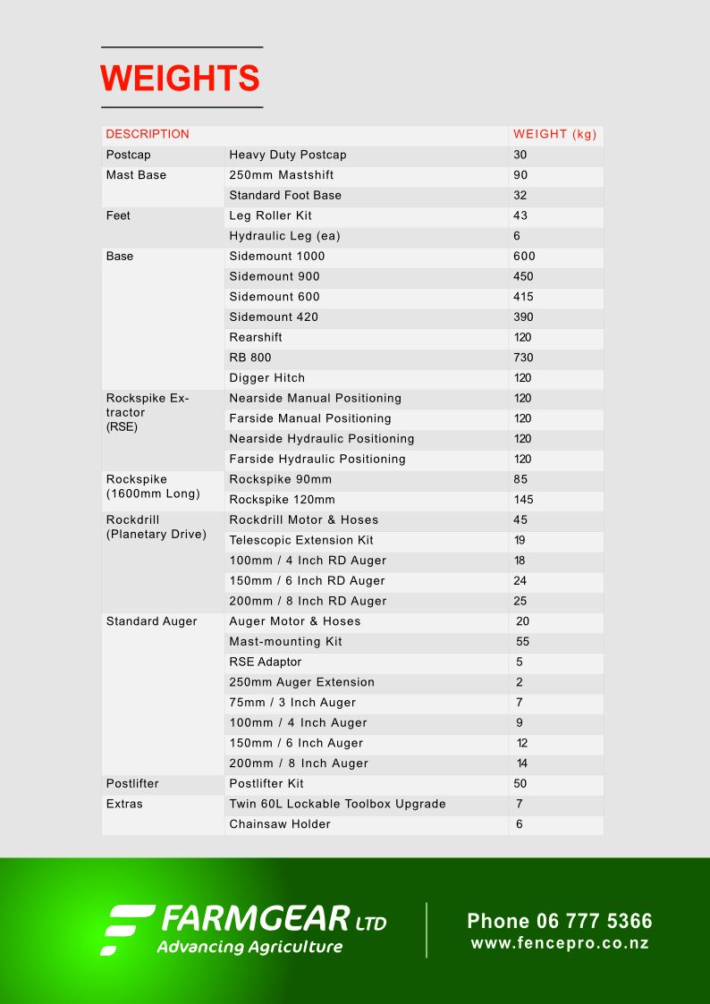 Remember to add the extra weight of the Block if you upgrade from the standard weight as shown in the table.